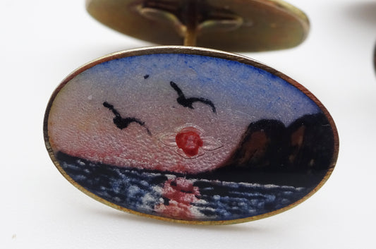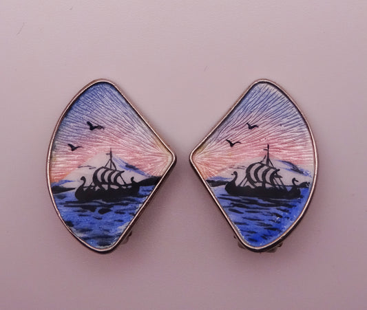 Norwegian Silver and Enamel Longship Clip On Earrings
