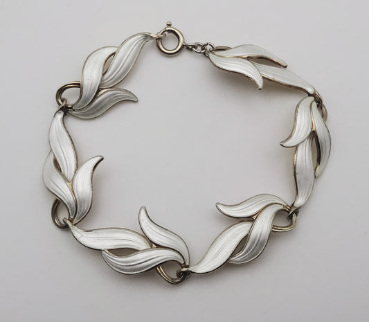 Scandinavian Silver Gilt and White Enamel Leaf Bracelet