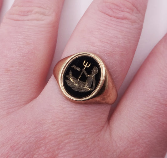 9ct Gold Black Onyx Aquarius Symbol Signet Ring
